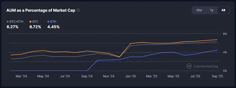 机构扩张:截至2025年第一季度,机构向加密领域注入了216亿美元。据CoinLaw统计,数字资产机构管理规模(AUM)超2350亿美元。