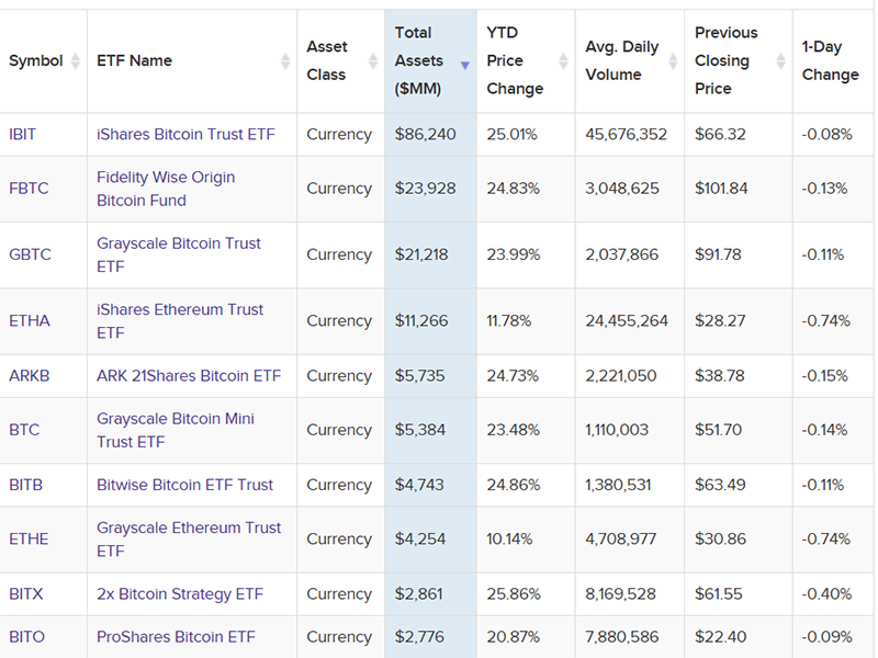 - iShares以太坊信托ETF(ETHA):所有基于ETH的ETF中最受欢迎且流动性最佳的产品